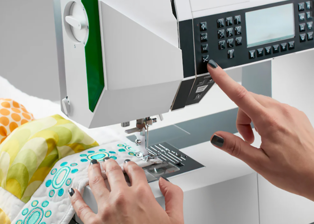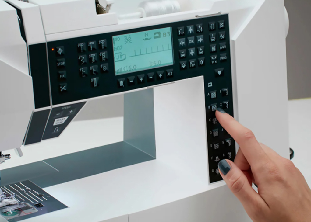 С помощью кнопок на панели выбирается строчка, для которой автоматически устанавливаются оптимальные параметры. При необходимости можно в ручном режиме уменьшить или увеличить длину и ширину стежка, используя кнопки «+» и «-».