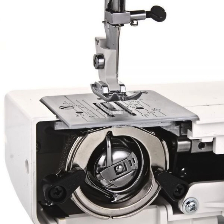 Модель оснащена вертикальным челноком, который отличается надежностью, простотой обслуживания и устойчивостью к нагрузкам. Двигатель мощностью 60 Вт обеспечивает стабильную работу при пошиве большинства бытовых тканей, включая многослойные материалы.