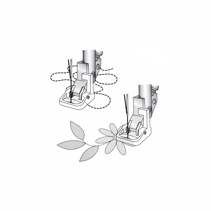 При медленном шитье в свободной технике лапка будет подниматься и опускаться на каждом стежке, удерживая ткань в процессе формирования стежков. При шитье на большой скорости лапка плавает над тканью.