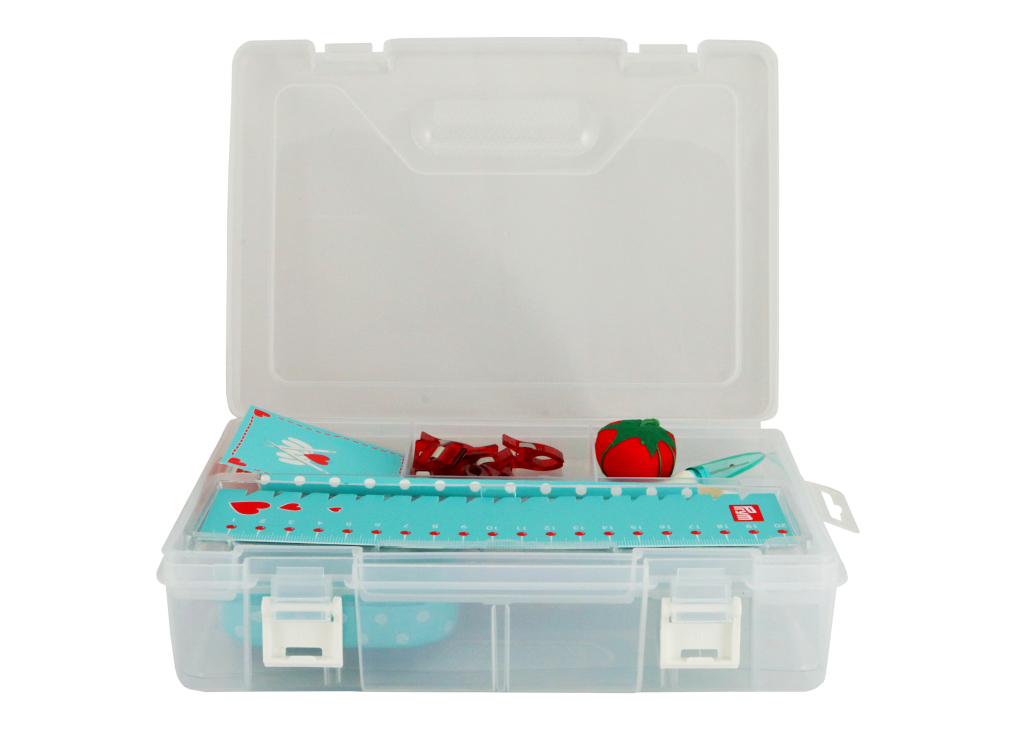 Прозорий пластиковий контейнер із високоякісними швейними аксесуарами просто незамінний супутник.